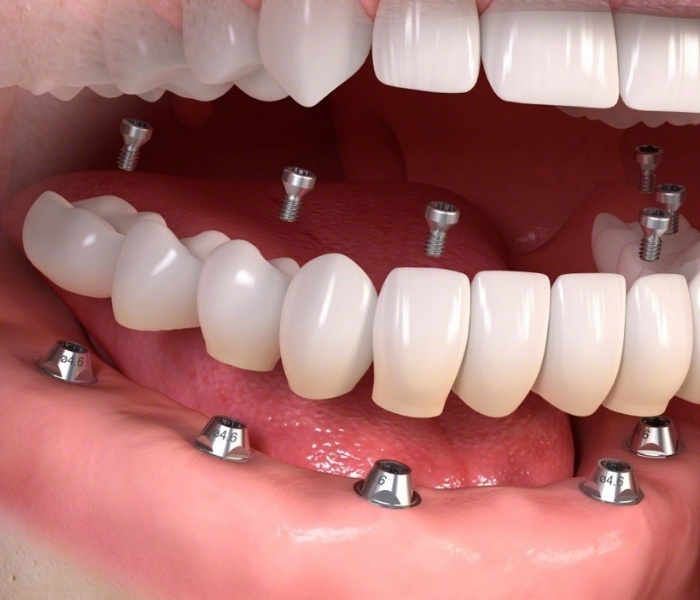De obicei, sunt necesare între 4 și 6 implanturi pentru a asigura suportul necesar. Numărul exact de implanturi este determinat de factori precum forma arcului, calitatea osului, starea arcului opus și forțele de mâncare. Fiecare tratament este personalizat pentru a se potrivi nevoilor individuale ale pacientului, asigurând o integrare eficientă și un confort maxim.